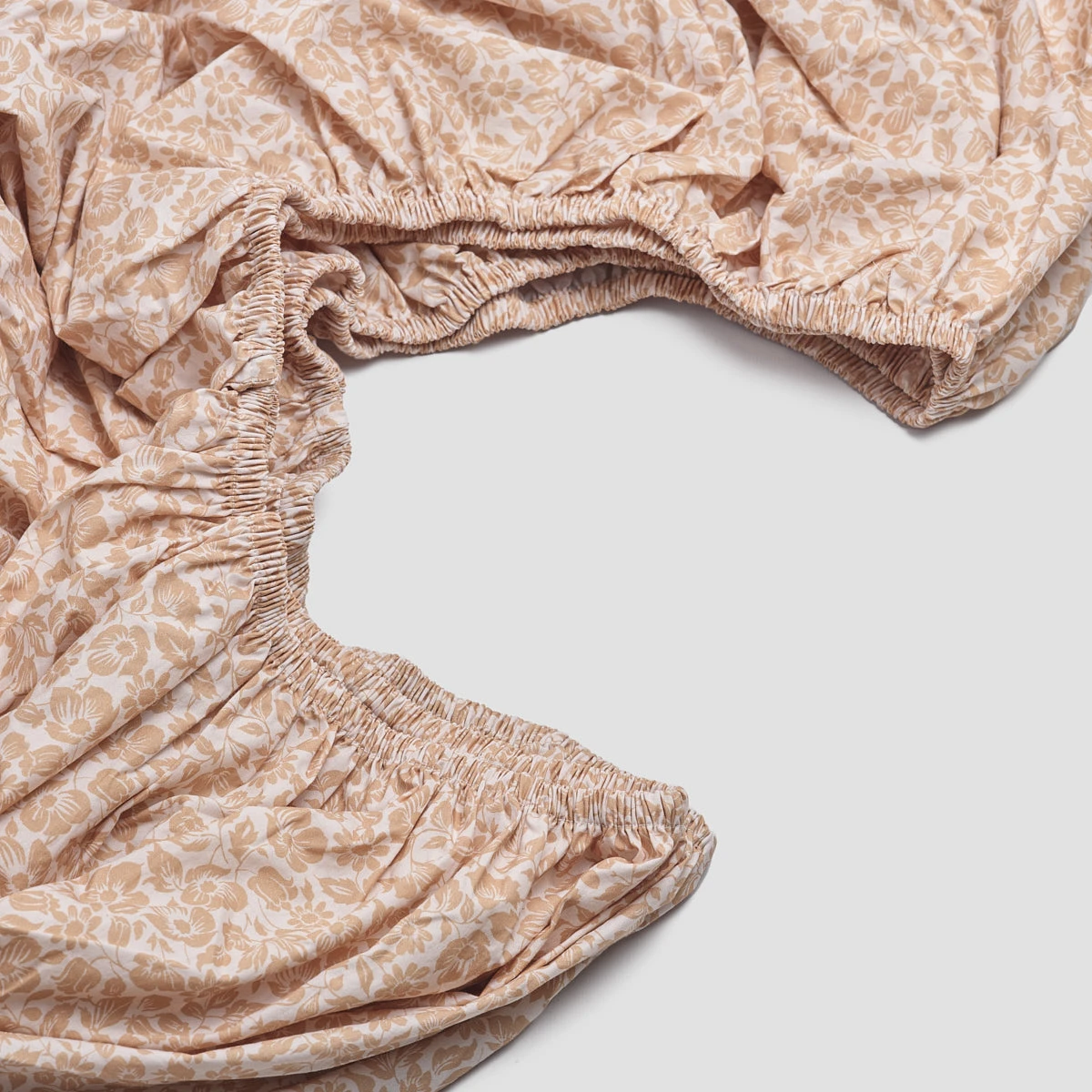 Meet our first floral cotton bedding collection, inspired by the romantic charm of English country houses. Working with The Design Library – the worlds largest collection of documentary fabrics, paintings, prints and patterns – we sourced an archival floral print and updated it for a modern setting, resulting in our new Meadow bedding range. Our Meadow Floral Printed Cotton Fitted Sheets are designed to be mixed and matched with our plain cotton colors, with our Butterscotch Meadow Floral Printed Cotton Fitted Sheet pairing particularly well with Pear and French Rose.