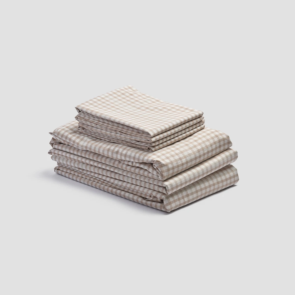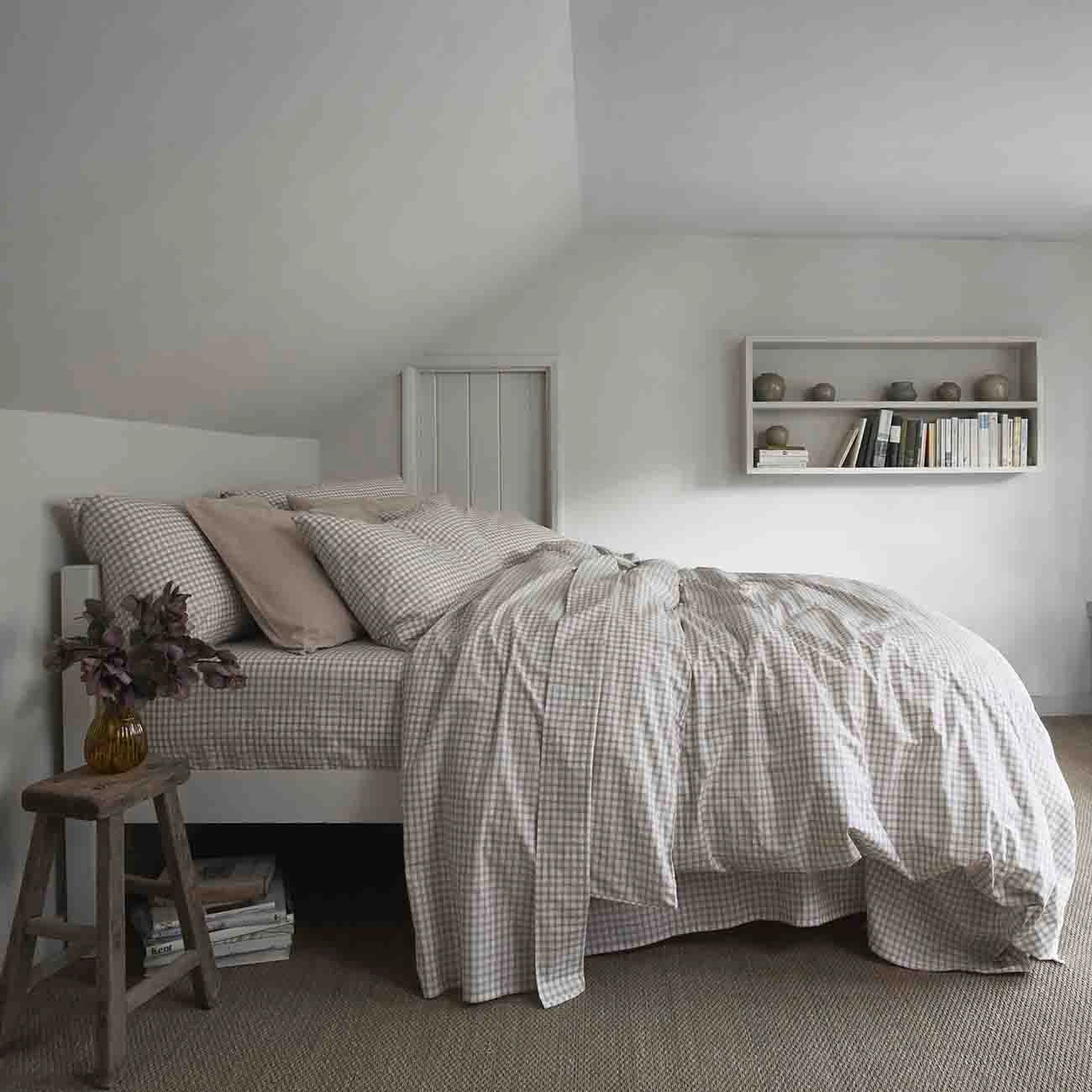 Our most-loved print: Gingham, is now available in crisp percale cotton. Made in Portugal from 100% cotton, our Cotton Gingham Bundle will add a charming, country-inspired feel to your bedroom. The percale weave allows for a matte finish, high breathability and relaxed look – perfect for lovers of high quality cotton bedding. Curate a unique bedtime look, sentimental to you and mix and match to your heart’s content. Our Cafe au Lait Gingham range looks utterly charming as a mono-print ensemble, but pairs beautifully with plain washed cotton colors: White, Parchment or Cafe au Lait.