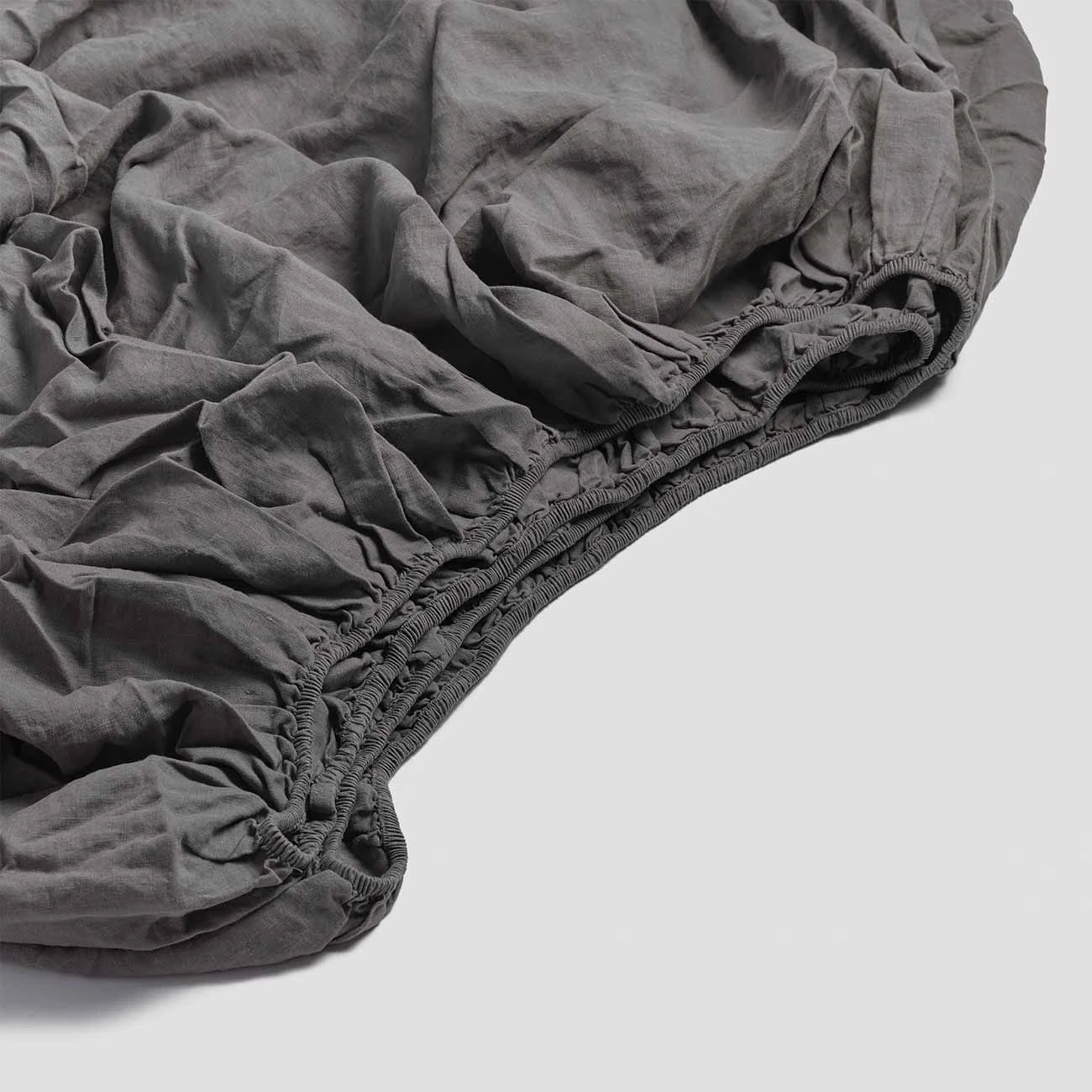 - Charcoal Gray linen fitted sheet with elasticated edges to make bed making easier.