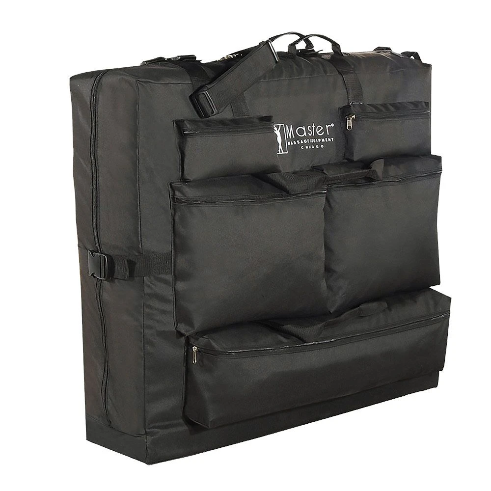 This Deluxe Nylon case comes with sturdy ergonomic shoulder and cross-body adjustable straps, Snap-Lock Buckles to securely fasten your table in the case and a large outside storage compartment for accessories. It is also an easy and convenient way to store and transport your portable massage table.