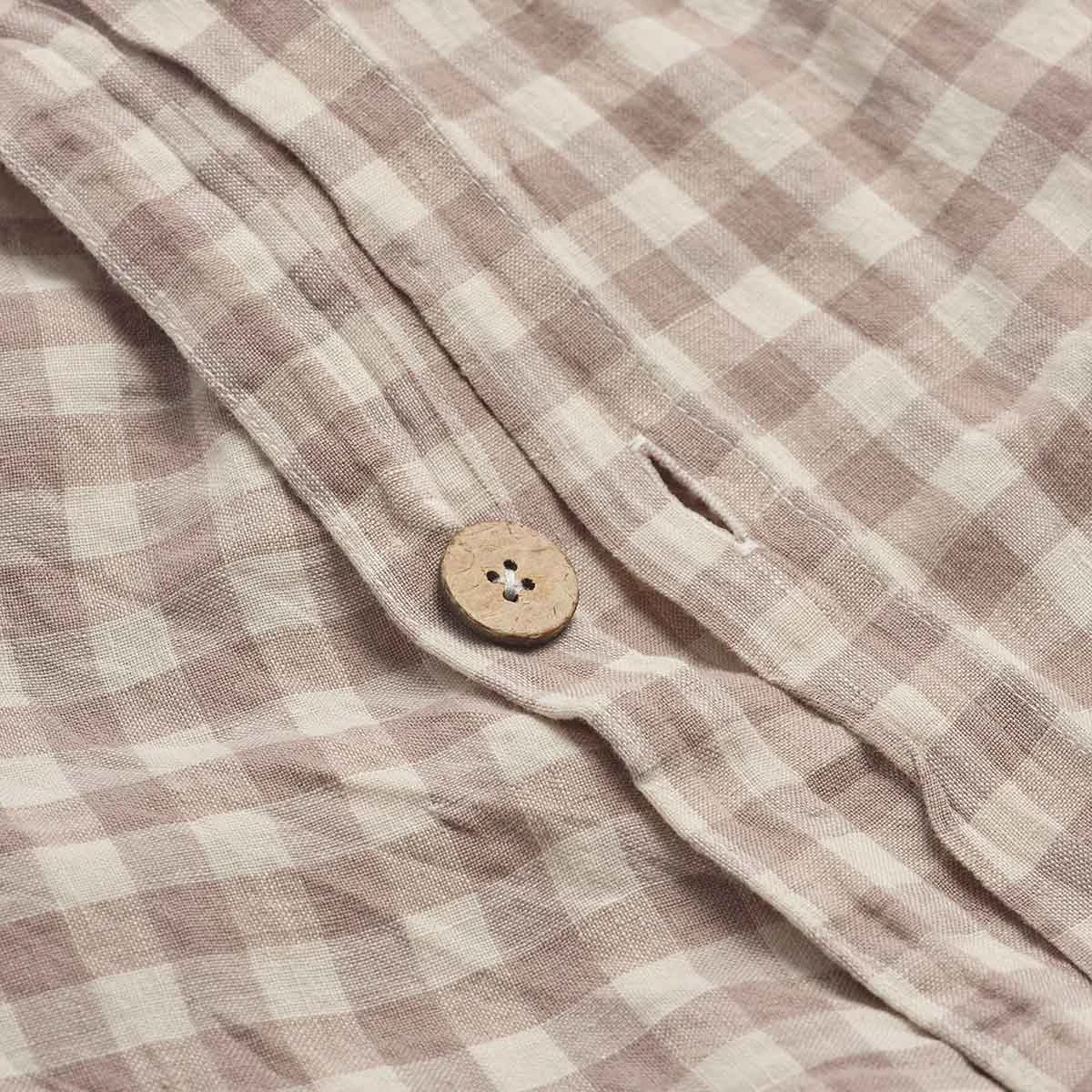 Introducing our nostalgic gingham linen duvet cover, now available in our soft gray hue: Mushroom. Made in Portugal from high-quality European linen, our gingham linen duvet covers are both durable and breathable, ensuring a comfortable night’s sleep every time. The classic gingham pattern adds a touch of timeless charm to any bedroom decor, while the neutral Mushroom colorway creates a cozy and tranquil ambiance. Mushroom gingham is designed to complement shades from our plain linen collection, pairing particularly well with Sage, Sandstone and Honey.