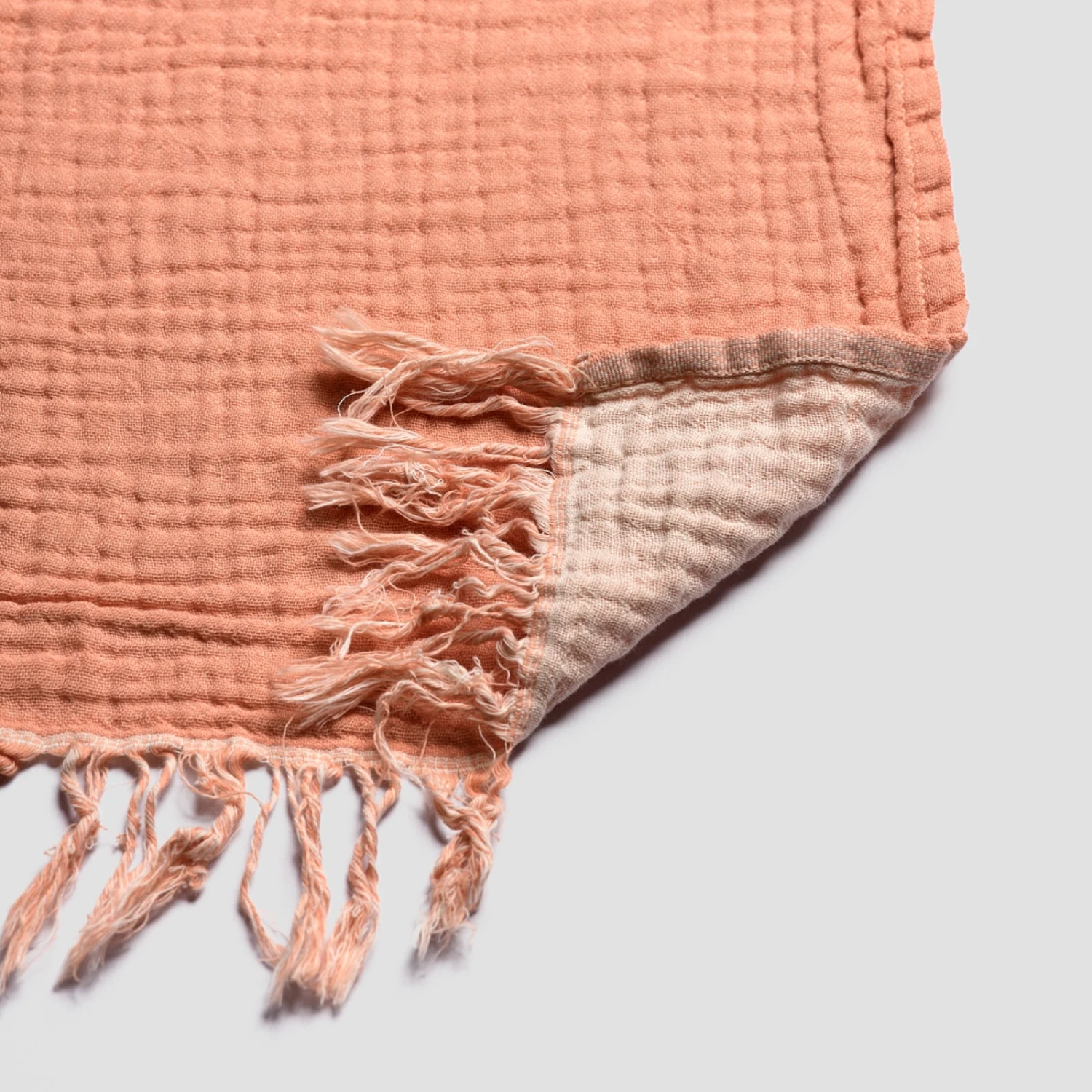 Made from 100% cotton sustainably sourced in partnership with the Better Cotton Initiative, this throw is lightweight, versatile and wonderfully soft, with a gently crinkled effect. Perfect for adding another layer on your bed for cooler nights or for keeping you warm on the sofa. With a soft fringe embellishment, it features our signature colors of Pink Clay on one side and Birch on the other, so you can turn it over for a whole new look.