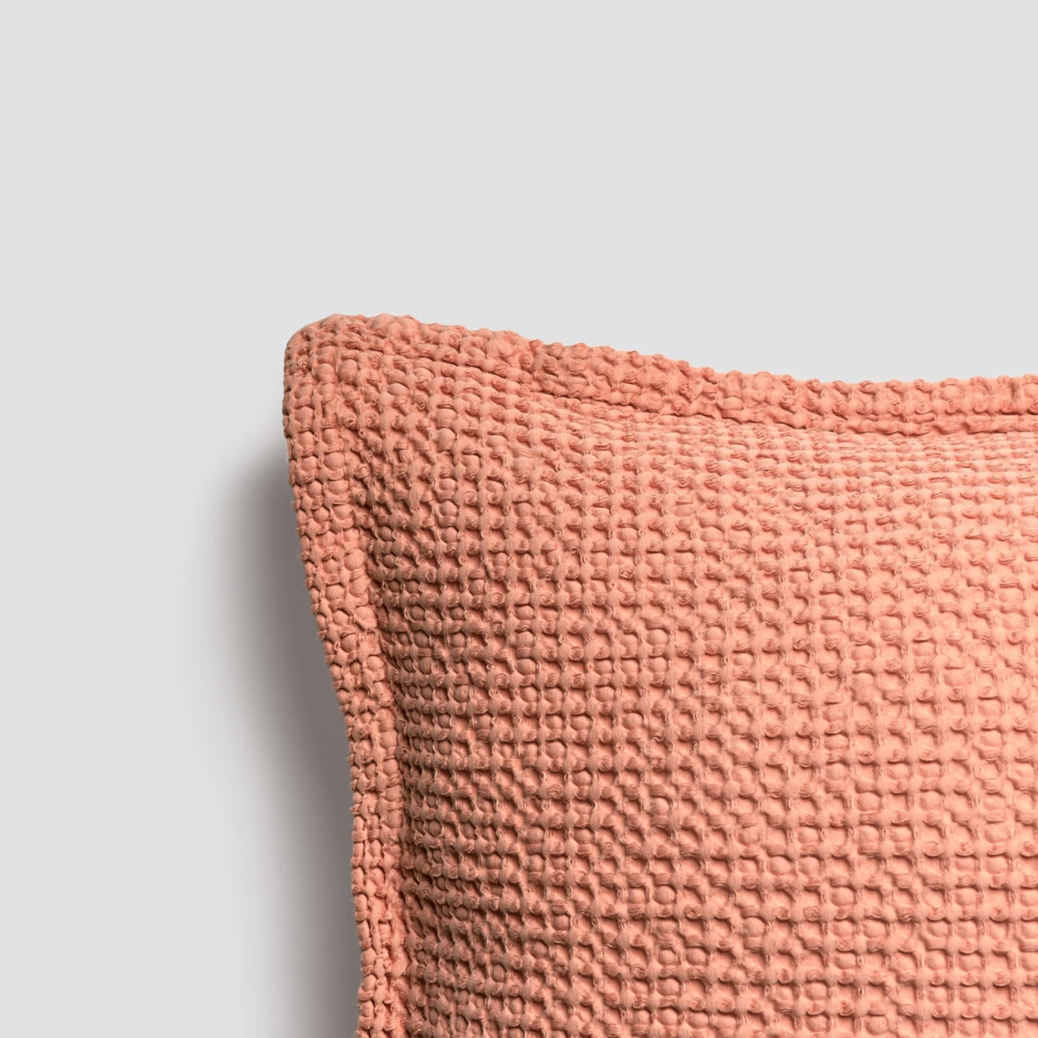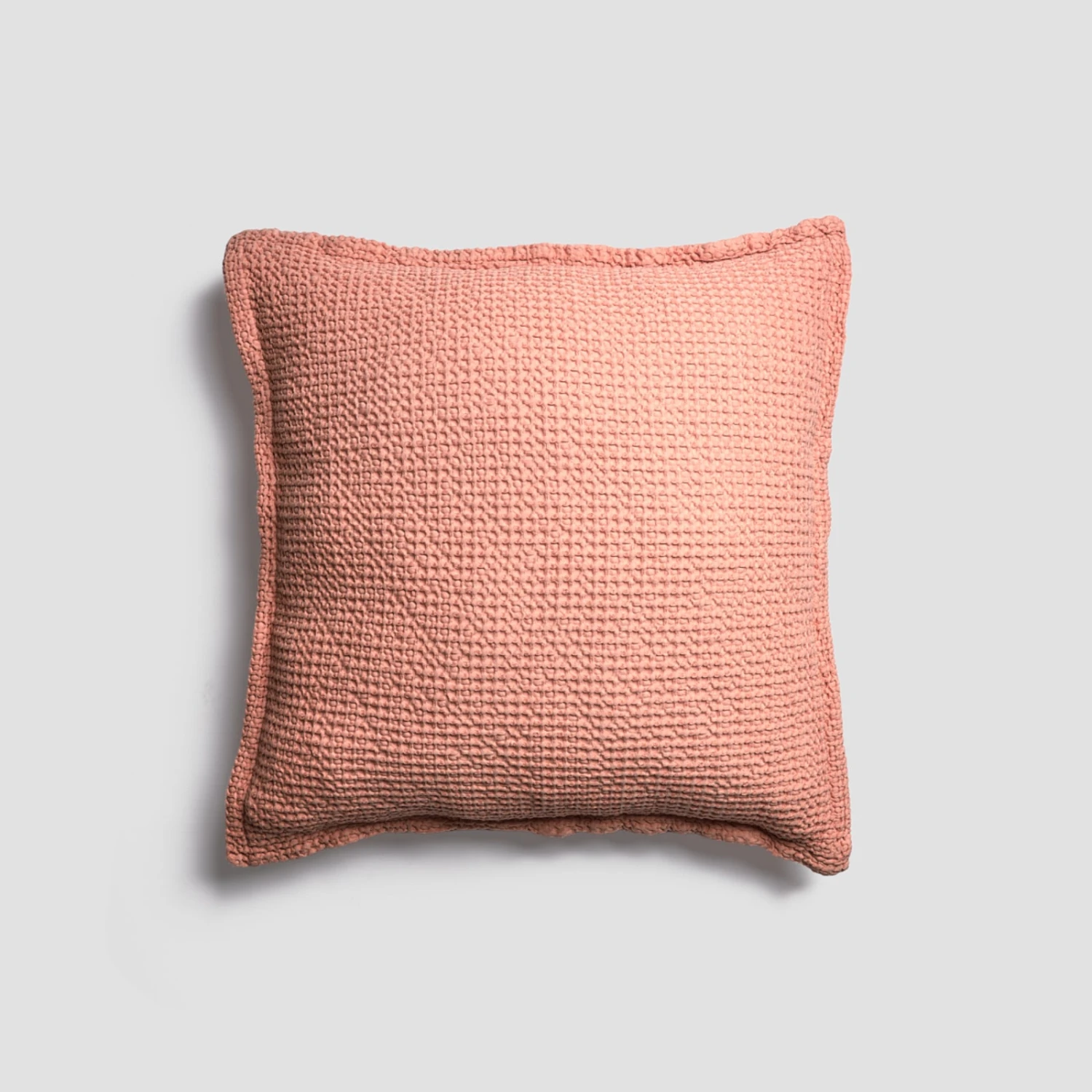 Featuring a wonderfully textured and rustic waffle-style weave, this 100% cotton cushion cover is made from cotton sustainably sourced in partnership with the Better Cotton Initiative. Soft, durable and great to add color to your bed or sofa. Mix and match colors with other designs in this collection or team with our crinkled linen and cotton cushion covers for a blend of textures. Pictured here in Pink Clay, a warm and soothing pink.