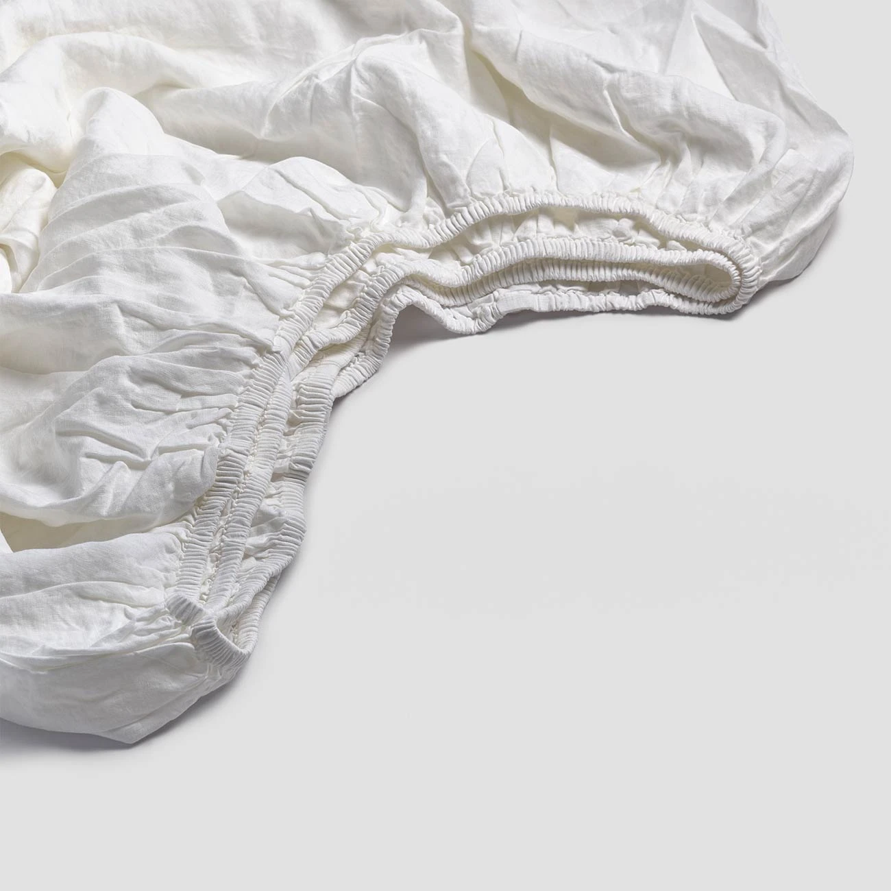 - White linen fitted sheet with elasticated edges to make bed making easier